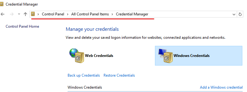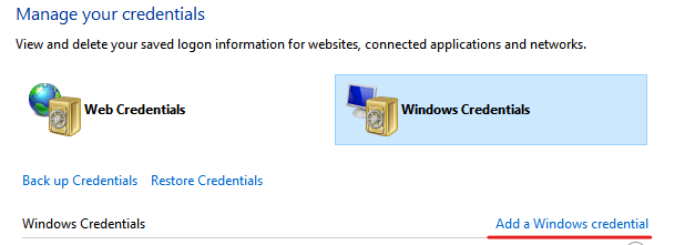 กด Add a Windows credential แล้วกรอก