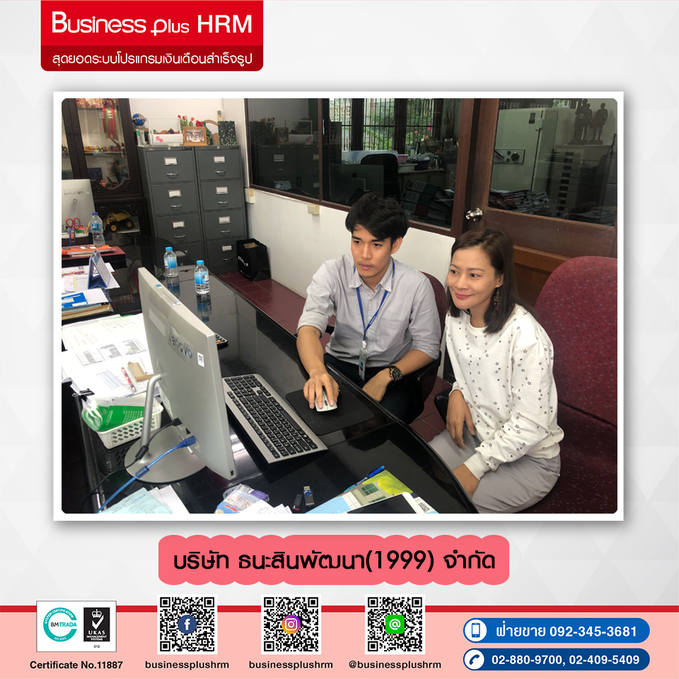 บริษัท อี-บิซิเนส พลัส จำกัด ขอขอบพระคุณ บริษัท ธนะสินพัฒนา (1999) จำกัด ประกอบกิจการด้านรับเหมาก่อสร้าง ที่มอบความไว้วางใจเลือกใช้ โปรแกรมเงินเดือนสำเร็จรูป BUSINESS PLUS HRM