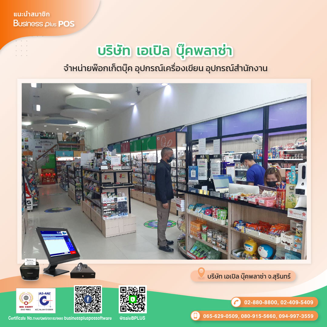 ขอขอบพระคุณ บริษัท เอเปิล บุ๊คพลาซ่า ที่ให้ความไว้วางใจเลือกใช้ระบบโปรแกรม Business Plus