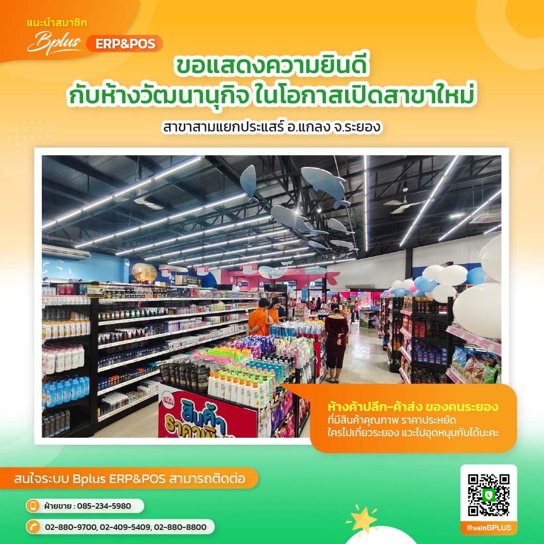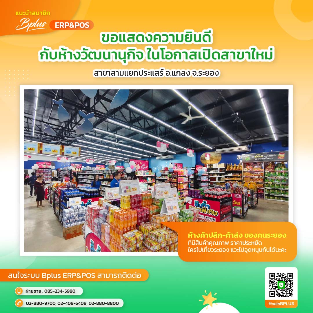 ห้างวัฒนานุกิจ ฉลองเปิดสาขาใหม่ วัฒนานุกิจ สาขาสามแยกประแสร์ อ.แกลง จ.ระยอง สินค้ามากมาย ราคาสุดคุ้ม สุดประหยัด โปรโมชั่นจัดเต็ม