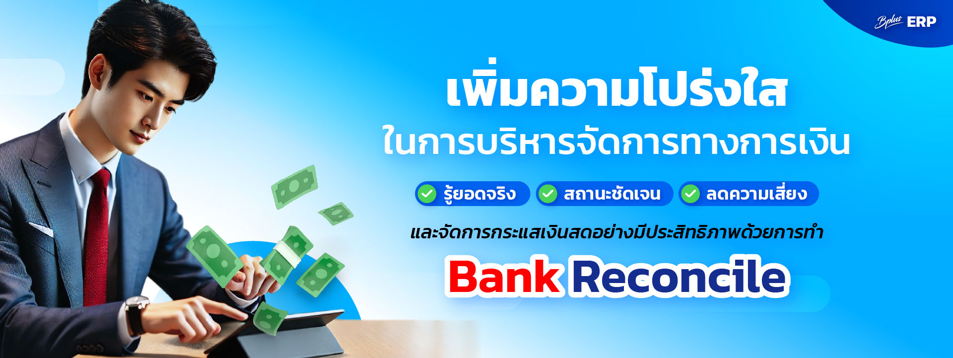- การใช้ซอฟต์แวร์ เช่น Bplus ERP จะช่วยให้การทำ Bank Reconcile ง่ายขึ้น โดยการนำเข้ารายการจากธนาคารอัตโนมัติและเปรียบเทียบกับข้อมูลในระบบได้อย่างรวดเร็ว