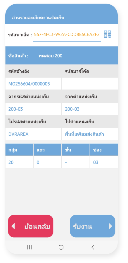 3. พนักงานคลังสินค้า หรือพนักงานขับรถยก รับงานผ่านอุปกรณ์ได้ทั้ง Smartphone และ Tablet ทำให้การจัดคิวงานทำได้อย่างต่อเนื่อง ประหยัดเวลา และเพิ่มผลลัพธ์ของงานได้มากขึ้น
