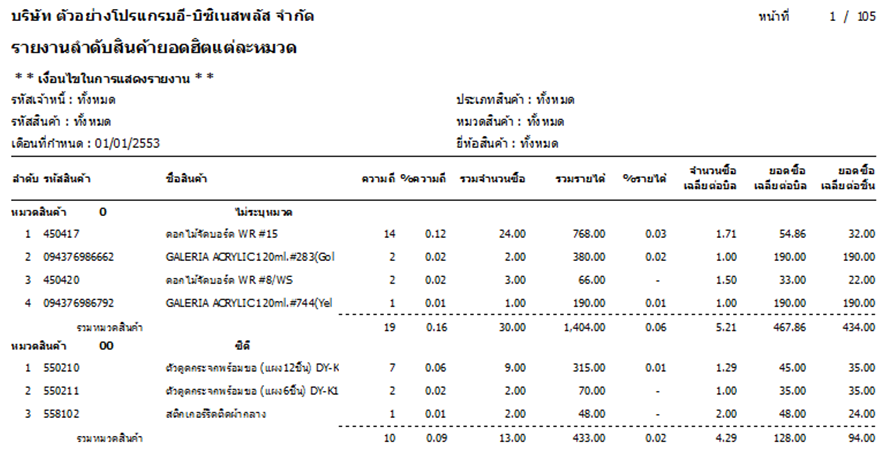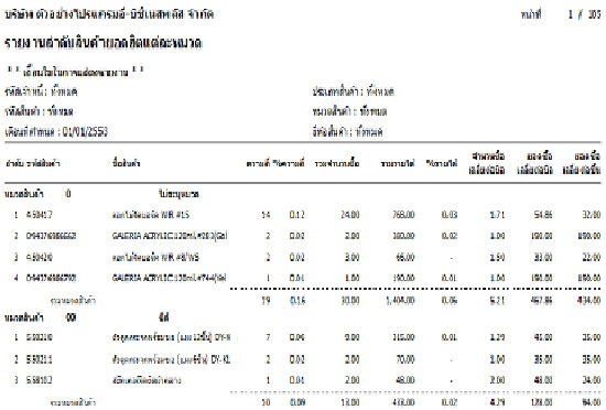 แต่ละหมวดหมู่ยังสามารถแบ่งแยกยี่ห้อ ซึ่งมีประโยชน์ในการคัดเลือกสินค้า และบริหารสินค้าคงคลัง ตลอดจน วิเคราะห์ได้ในลักษณะพิเศษของสินค้าเช่น ปากกาสีดำ 5 ลำดับขายดีคือยี่ห้อใด ปากกาสีต่าง ๆ ที่ขายได้คือสีใดบ้าง และเป็นของยี่ห้อไหน ลำดับการขายดีของสินค้าและวิเคราะห์สต็อก Ratio ทั้งหมดเพื่อคัดสรรสินค้าที่คุ้ม และเพื่อการบริหารจัดการสินค้าที่ไม่เคลื่อนไหว