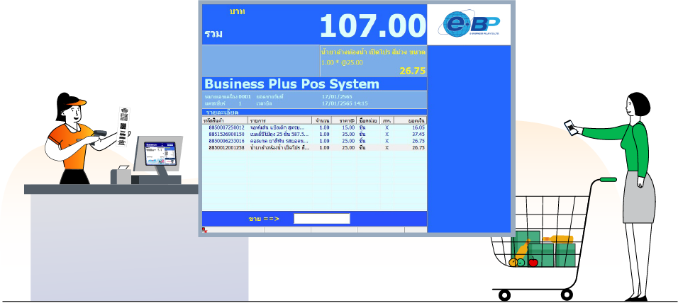 ?แคชเชียร์สแกนครั้งเดียวได้สินค้าครบทั้งหมดในรถเข็นเพื่อแจ้งยอดรอการชำระจากลูกค้า