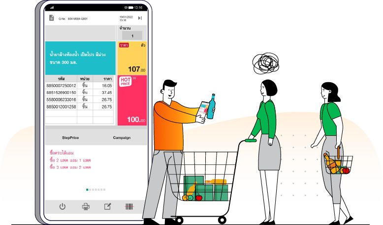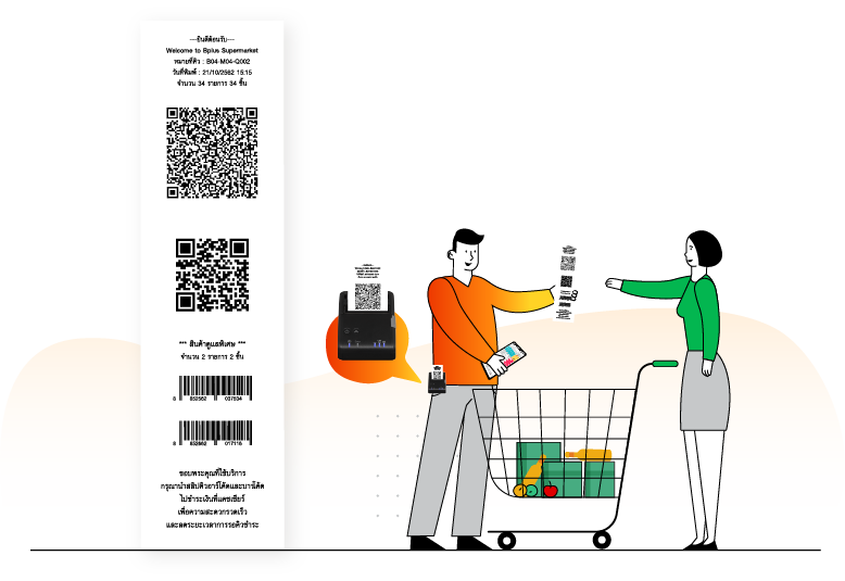ช่วยลดระยะเวลารอคิวในการคิดเงินที่จุดแคชเชียร์ โดยใช้คิวอาร์โค้ด โดยขั้นตอนง่ายๆ เพียงใช้ Smartphone ที่เชื่อมต่อกับเครื่องพิมพ์พกพา สแกนบาร์โค้ดสินค้าในตะกร้าหรือรถเข็นของลูกค้า เมื่อสแกนเสร็จ เครื่องพิมพ์แบบพกพาจะสร้างสลิปคิวอาร์โค้ดที่มีข้อมูลทั้งหมดจากรายการสแกนและบาร์โค้ดสำหรับรายการที่ต้องการดูแลพิเศษ เช่น สินค้าที่แก้วจานกระเบื้องเป็นชิ้น เป็นต้น เมื่อลูกค้าต้องการชำระเงิน เพียงนำสลิปที่ได้รับมาให้แคชเชียร์ แคชเชียร์เพียงสแกนคิวอาร์โค้ดและบาร์โค้ดสินค้าดูแลพิเศษ เพียงครั้งเดียว รายการทั้งหมดจะแสดงทันทีที่ POS และเข้าสู่การรับชำระและพิมพ์ใบเสร็จรับเงินให้กับลูกค้าได้ภายในไม่กี่วินาที ทำให้ที่แคชเชียร์ใช้เวลาสั้นมากๆ นอกจากทำให้ระยะเวลาที่จุดแคชเชียร์สั้นลงแล้วยังสร้างความพึงพอใจให้กับลูกค้าเป็นอย่างมาก ดาวน์โหลดโบรชัวร์
