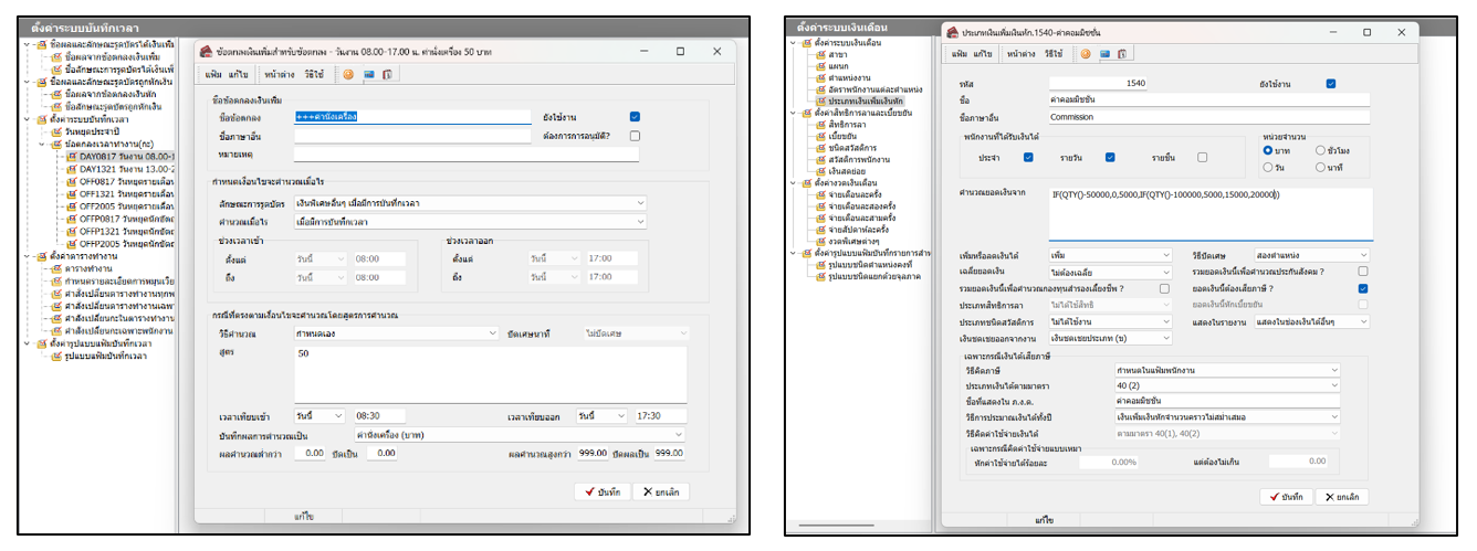 -ค่านั่งเครื่องตามกะทำงาน สามารถตั้งค่าการนั่งเครื่องจ่ายตามวันที่มีบันทึกเวลาได้ โดยจ่ายวันละ 50 บาท