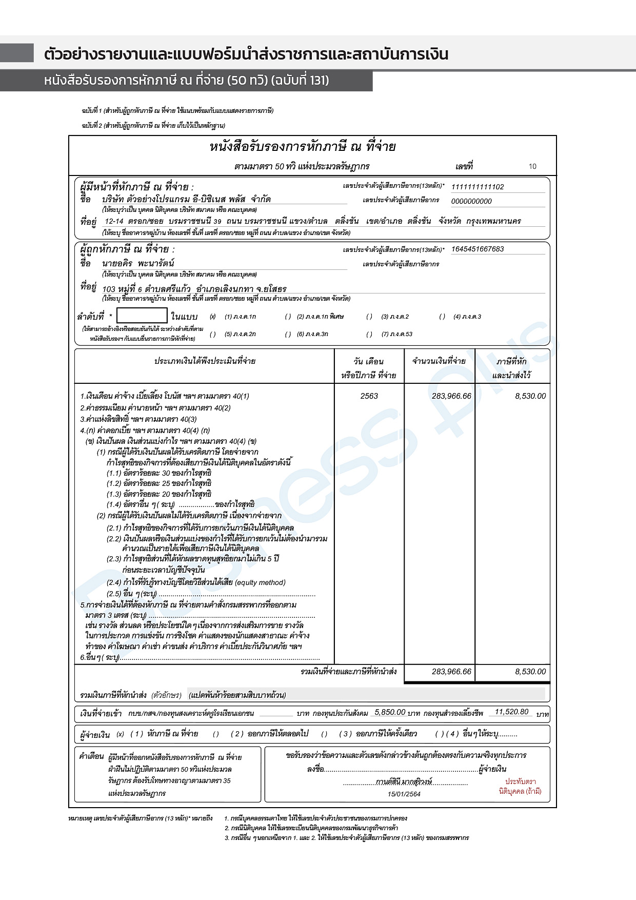 หนังสือรับรองการหักภาษี ณ ที่จ่าย (50 ทวิ)(ฉบับที่ 131) คลิกรายละเอียด