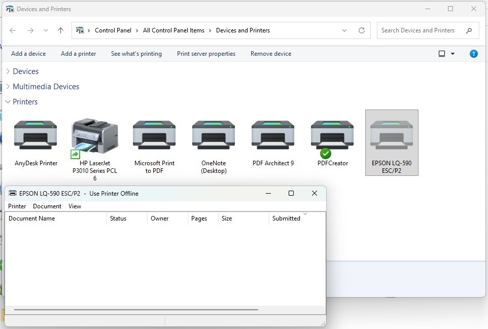 - ตรวจสอบสถานะเครื่องพิมพ์ใน Control Panel > Devices and Printers