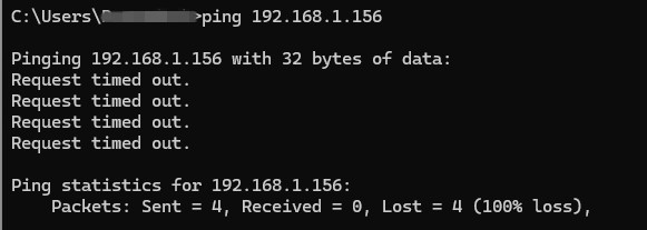จากนั้นใช้คำสั่ง ping ตามด้วย Ip Address ที่ทราบ ตัวอย่างคือ 192.168.0.156 และตรวจสอบผลลัพธ์ที่ได้