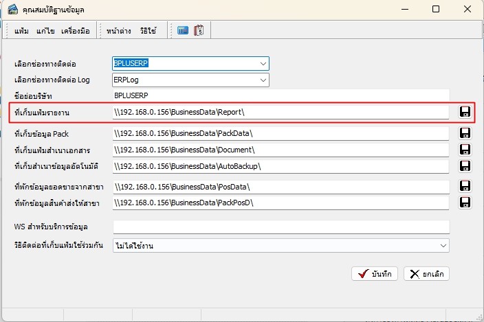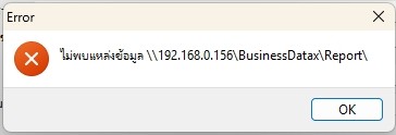 - การตั้งค่าตำแหน่งที่เก็บไฟล์ รายงานที่ตั้งค่าไว้ไม่ถูกต้อง โดยข้อความส่วนใหญ่จะ แสดงเป็น ไม่พบแฟ้มรายงาน ที่ //xxx.xxx.xxx.xxx/BusinessData เป็นต้น