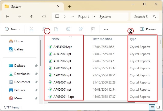 โดยในส่วนแสดงผลที่ 1 คือชื่อไฟล์และนามสกุลไฟล์ ซึ่งจะต้องเป็น *.rpt เท่านั้น