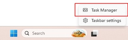 - คลิกขวาที่ แทบว่าง ด้านล่างของหน้าจอ และเลือก Task Manager ดังภาพ