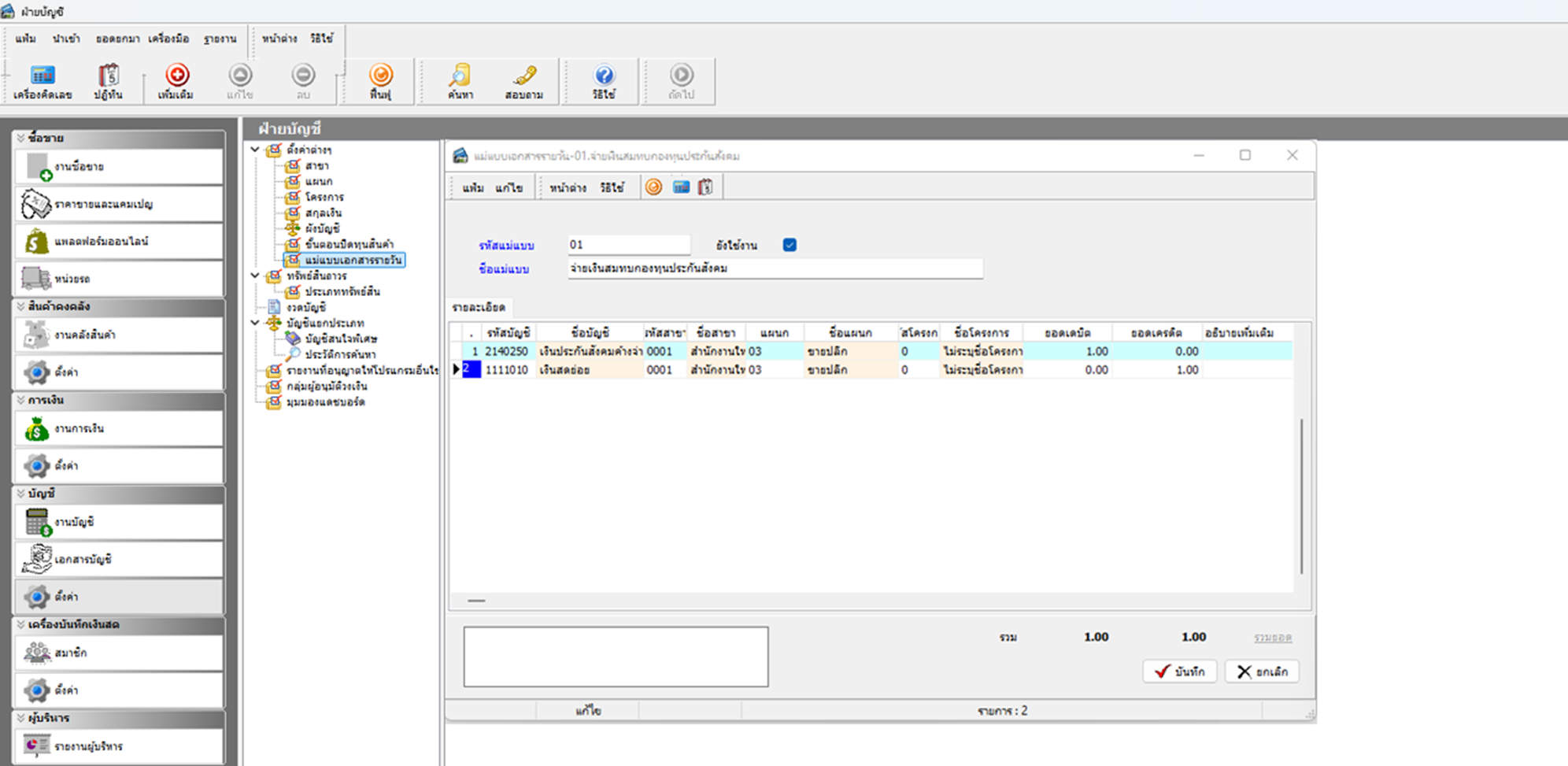 2.การบันทึกเอกสาร สามารถใช้ฟังก์ชั่นอ่านจากแม่แบบ เพื่อเลือกเอกสารแม่แบบเอกสารรายวัน เพื่อบันทึกบัญชีได้