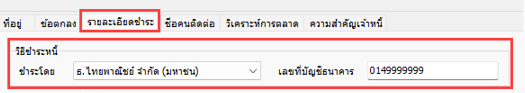 2.บันทึกเลขที่บัญชีธนาคารของกิจการ สำหรับโอนตัดบัญชี
