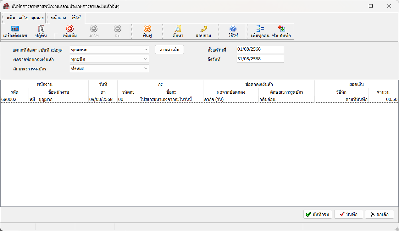 กรณีที่ใน 1 วัน พนักงานทั้งมาสายและกลับก่อน ถ้าจะให้หักมาสายตามจริง แต่เปลี่ยนกลับก่อนเป็นลากิจสามารถทำได้หรือไม่ อย่างไร 18 September 2025 View 58