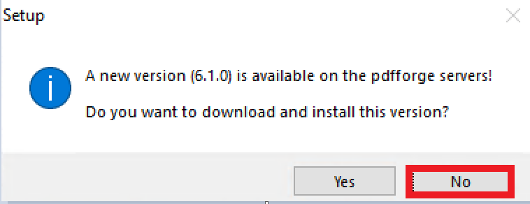ขั้นตอนการติดตั้ง PDFCreator 3.3.2 หรือ 3.5.1 แสดงหน้าจอ Download Version ล่าสุดของ PDFCreator คลิกที่ไอคอน No ตามภาพ