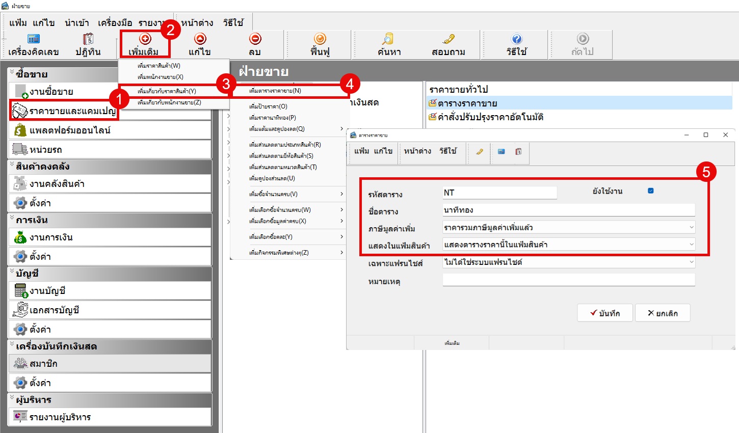 เลือก เพิ่มเติม > เพิ่มเกี่ยวกับราคาสินค้า > เพิ่มราคานาทีทอง