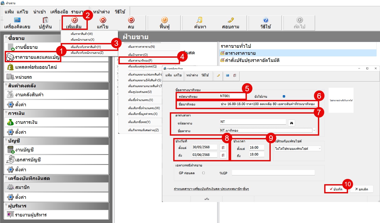 กรณีร้านค้ามีจำหน่ายสินค้า ต้องการจะให้ช่วงเวลา 16.00 - 18.00 ลดราคาจากปกติ 100 เหลือ 80 ต้องทำอย่างไร