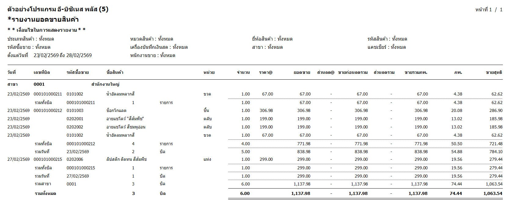 ผู้ใช้งานสามารถดูรายละเอียดสินค้าที่ขายในแต่ละบิลจากรายงานยอดขายสินค้าได้อย่างครบถ้วน