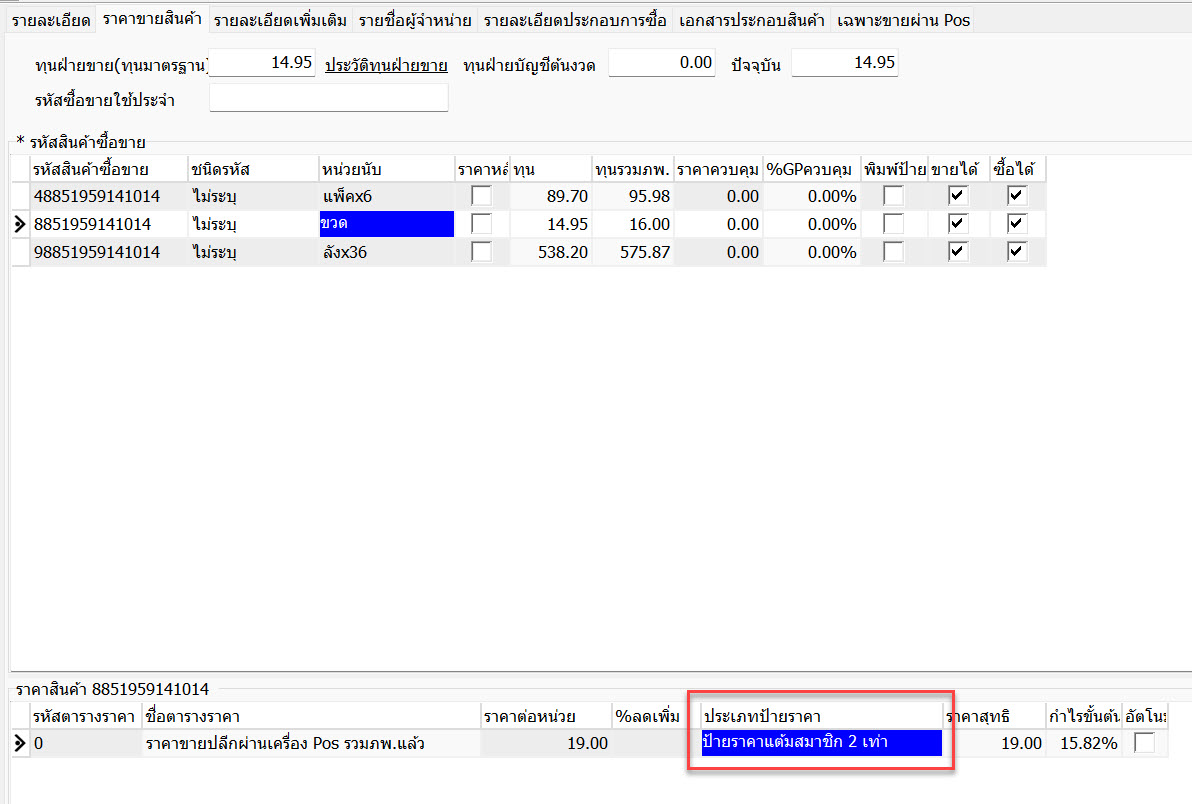 - เข้าแฟ้มสินค้า → การกำหนดราคาขาย