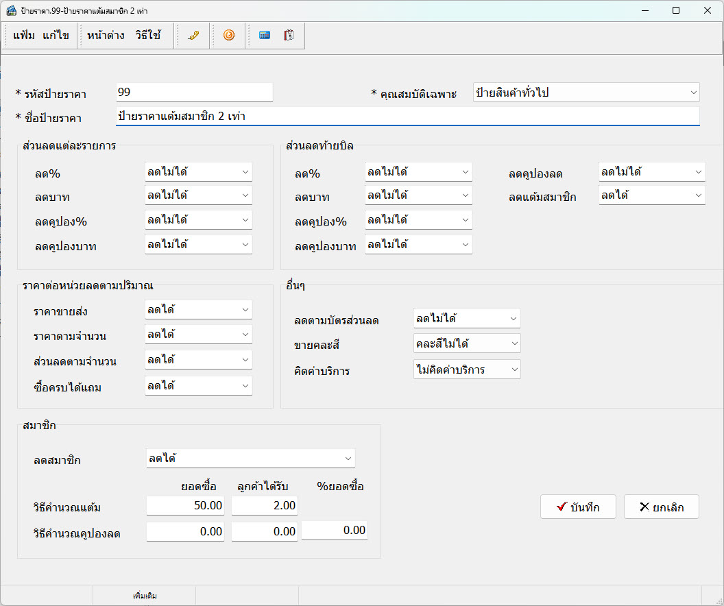 - กำหนดให้สินค้าเฉพาะกลุ่มใช้ป้ายราคา 2 เท่า
