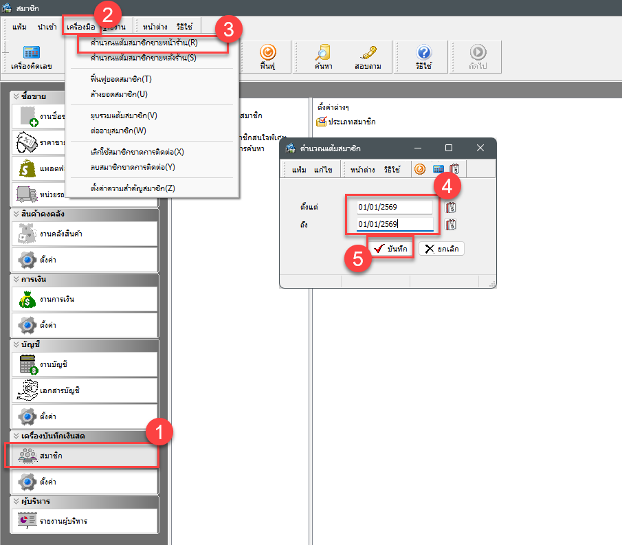 สมาชิก → เครื่องมือ → คำนวณแต้มสมาชืกหน้าร้าน