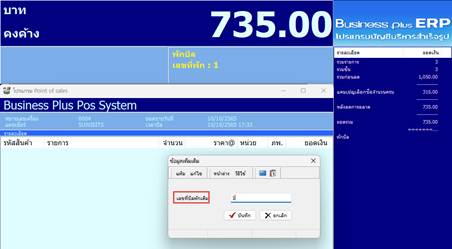 เมื่อลูกค้า กลับมาทำรายการชำระเงิน สามารถเรียกบิลที่พัก กลับมาแล้วทำรายการต่อเนื่องได้ทันที