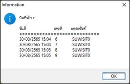 สามารถตรวจสอบรายการที่พักบิลได้โดยกดปุ่มสอบถามบิลที่พักได้ หน้าจอจะแสดงรายการบิลที่พักค้างไว้ในวันทั้งหมด