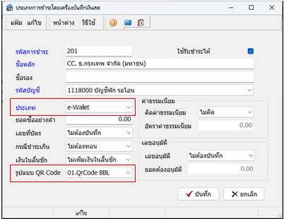 4.วิธีปฏิบัติ : ระบบสามารถกำหนดประเภทชำระ เพื่อรองรับการชำระผ่าน e-Wallet หรือ QrCode ได้ดังนี้