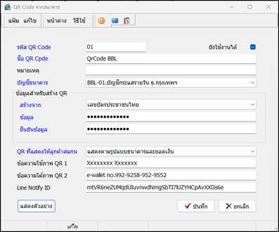 ข้อความใช้ภาพ QR1 คือ แสดงข้อความใต้ QR Code บรรทัดที่ 1 เช่น ชื่อบัญชี เป็นต้น
