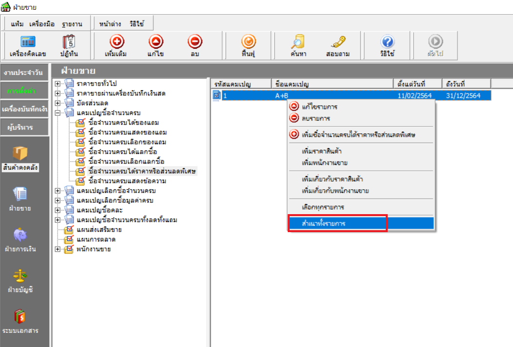 โดยคลิกขวาที่แคมเปญที่ต้องการสำเนา เลือก สำเนาทั้งรายการ