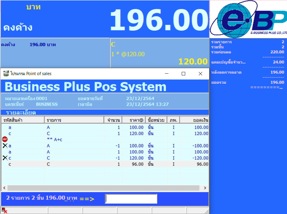 * จากตัวอย่างสินค้าที่จะได้รับส่วนลดเมื่อซื้อครบ มีสินค้า B กับสินค้า C ดังนั้นเมื่อทำการตั้งแคมเปญคู่แรกเรียบร้อยแล้ว