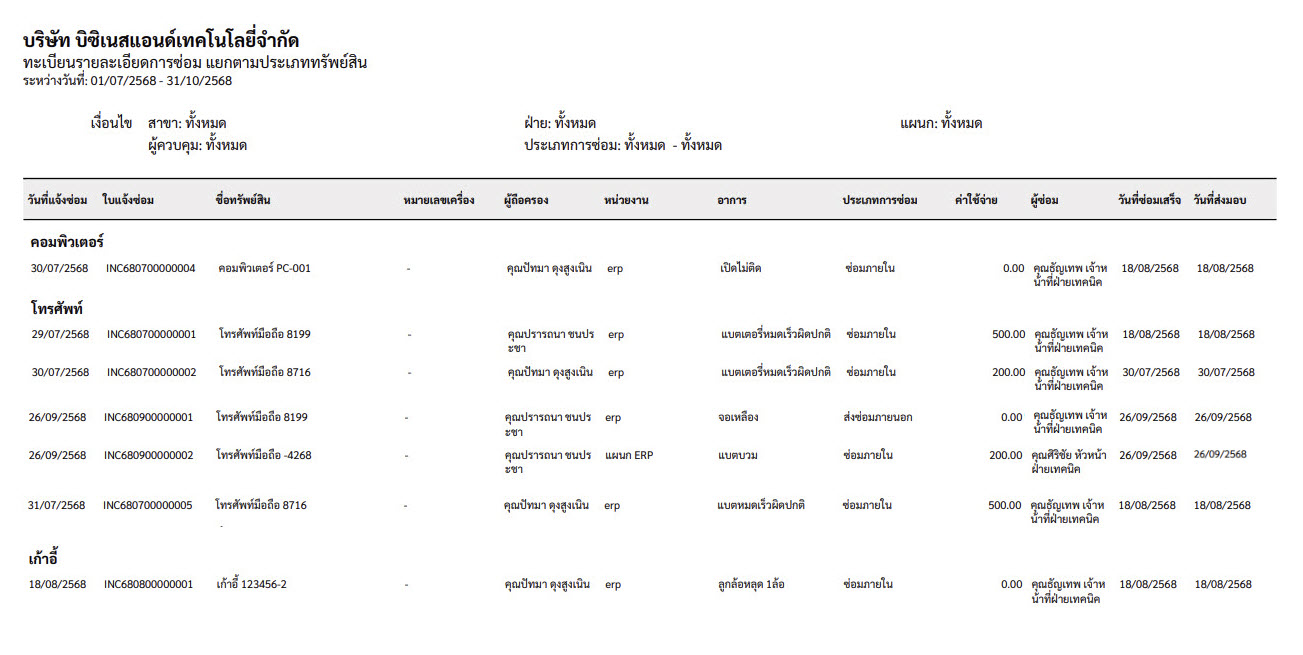 ไม่ว่าจะซ่อมเองภายในองค์กรหรือส่งซ่อมภายนอก ระบบของเราช่วยจัดการทุกขั้นตอนให้เป็นไปอย่างราบรื่น และสามารถติดตามความคืบหน้าได้ตลอดเวลา