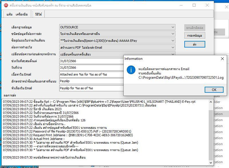 อธิบาย: กรณีส่งใบจ่ายเงินเดือน-หนังสือรับรองหัก ณ ที่จ่าย-ผ่านสื่ออิเลคทรอนิค (E-payslip) เมื่อกดปุ่มส่งพบว่า ระบบแจ้งเตือน “ ไม่สามารถสร้างแฟ้ม PDF สำหรับพิมพ์ ….. (Queue Jam)”