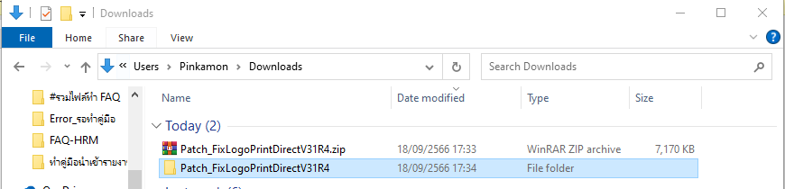 3. แตกไฟล์ที่ดาวน์โหลด Patch_FixLogoPrintDirectV31R4.zip จะแสดงโฟลเดอร์