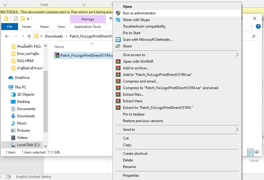 4. ดับเบิ้ลคลิกโฟลเดอร์ Patch_FixLogoPrintDirectV31R4 จะพบไฟล์ Patch_FixLogoPrintDirectV31R4.exe จากนั้นทำการติดตั้งโดยคลิกขวาแล้วกด Run as administrator