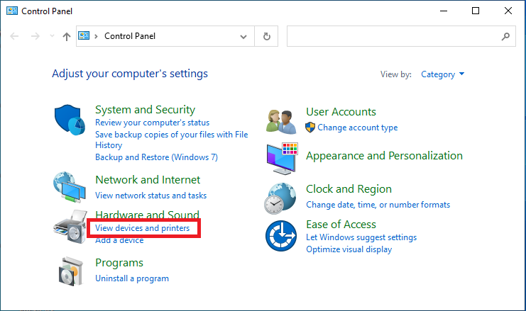 1. ไปที่ Control Panel เลือก “View devices and printers”
