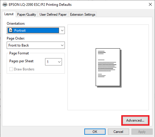 3. หน้า Printing Preferences กดปุ่ม “Advance”