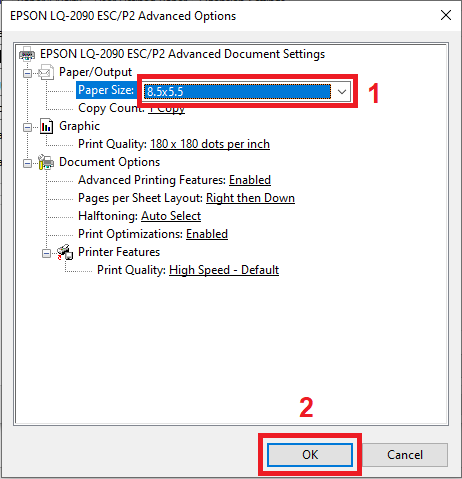 6.2 ในส่วน Paper size ให้กำหนดเป็น 8.5x5.5 จากนั้นกดปุ่ม “Ok”