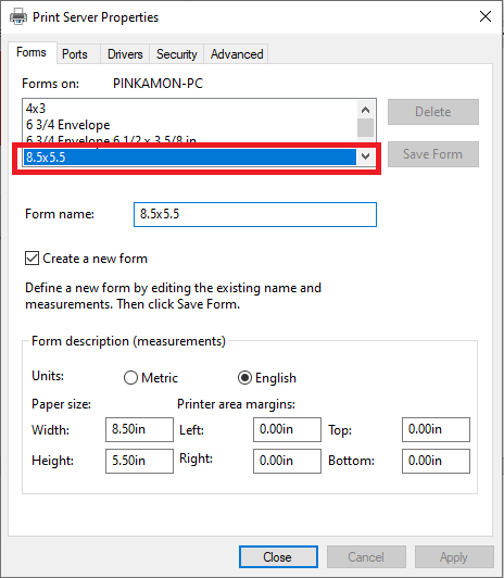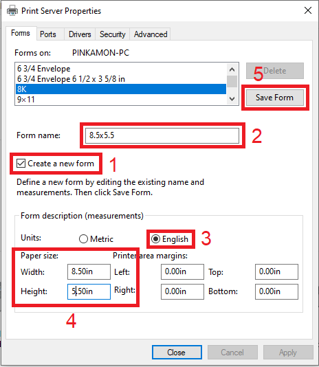 4.5 กดปุ่ม Save Form เพื่อบันทึกขนาดกระดาษที่กำหนด