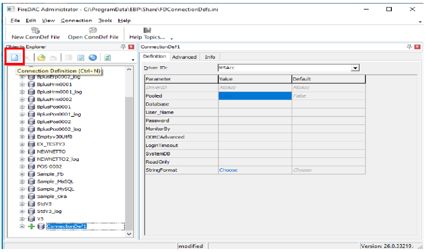 2. กดปุ่ม Connection Definition เพื่อสร้างไฟล์เชื่อมโยงฐานข้อมูล