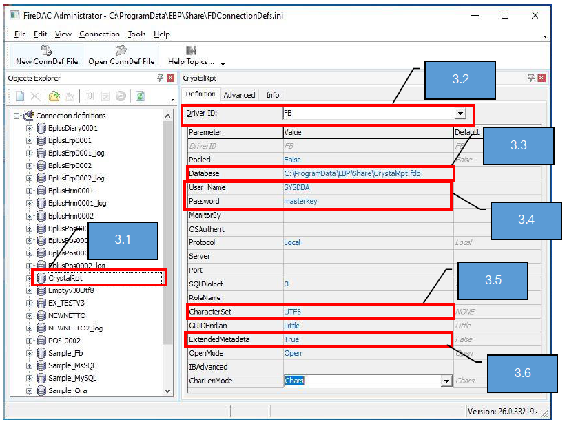 3.3 กำหนดค่า Database เป็น “C:/ProgramData/EBP/Share/CrystalRpt.fdb”