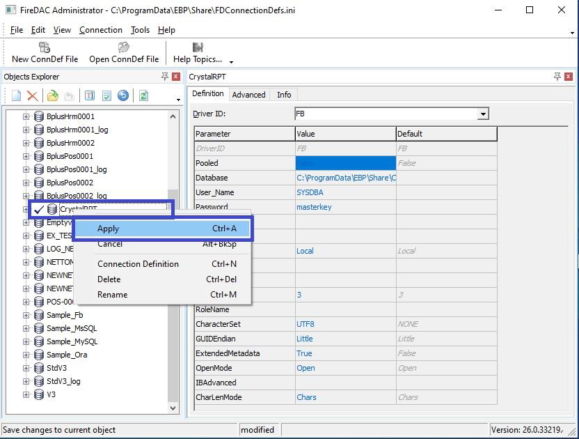 2. จากนั้นคลิกขวาที่ CrystalRPT แล้วกดปุ่ม Apply
