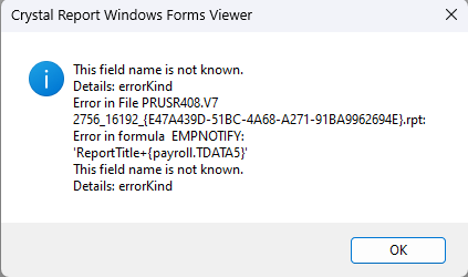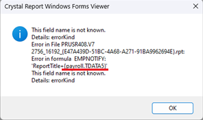 สาเหตุ เกิดจากมีการอัพเดทโปรแกรม BplusHrm เป็นเวอร์ชั่นตั้งแต่ 7.2 เป็นต้นไป และมีการพิมพ์ใบจ่ายเงินเดือนจากทะเบียนรายงานเวอร์ชั่นต่ำกว่า BplusHrm V7.2