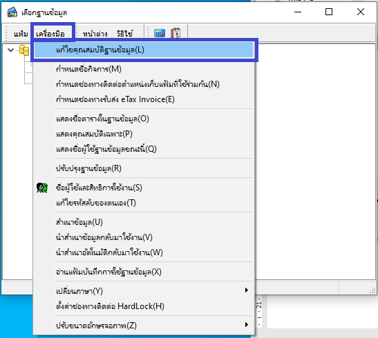 2. ทำการตั้งค่าที่เก็บแฟ้มรายงาน โดยเข้าไปที่เมนูเครื่องมือ >> แก้ไขคุณสมบัติฐานข้อมูล