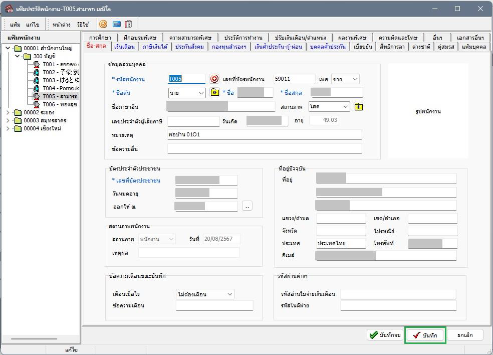วิธีแก้ไข: ตรวจสอบแฟ้มประวัติพนักงานที่พบปัญหา ตามขั้นตอนดังนี้