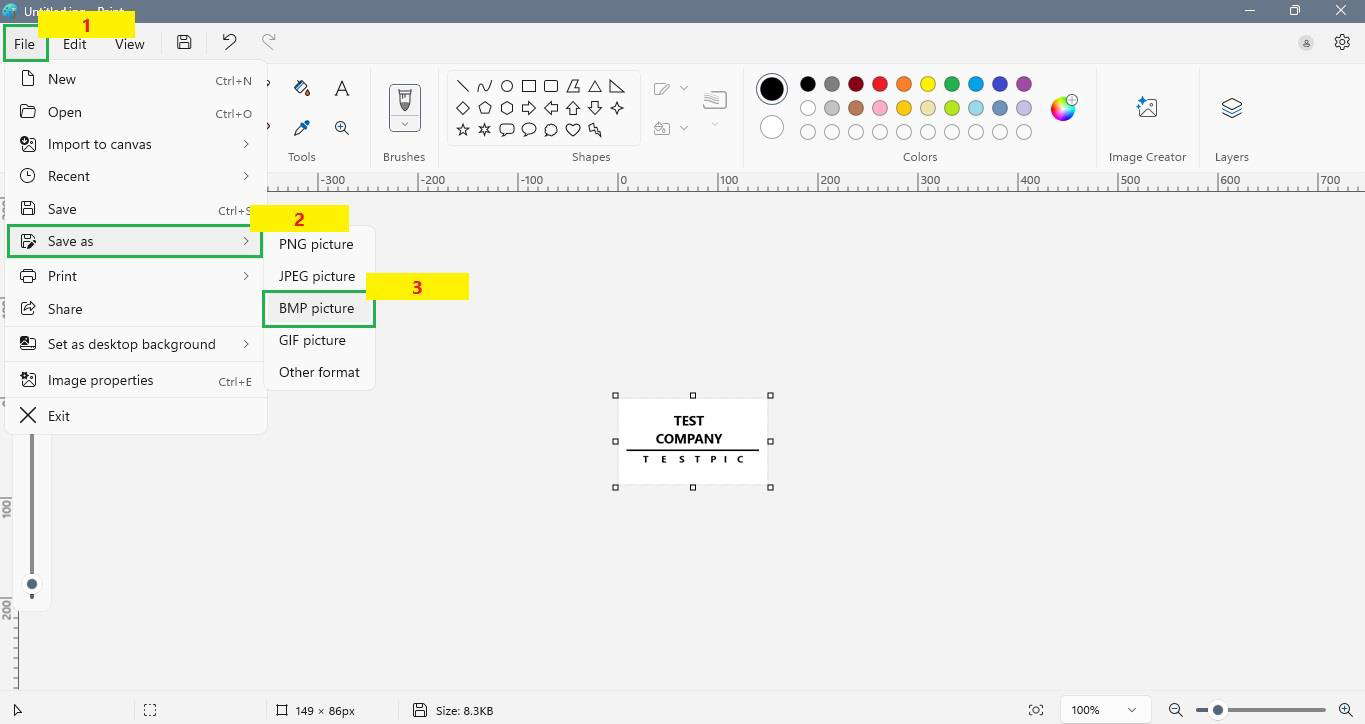 7. จากนั้นกดปุ่ม File >> เลือก Save as >> เลือก BMP picture เพื่อบันทึกไฟล์ภาพโลโก้ที่ลดขนาด