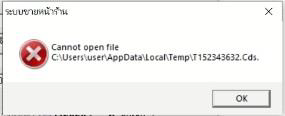 อธิบาย: เรียกรายงานแล้วโปรแกรมแจ้งข้อผิดพลาด “Cannot open file C:/Users/users/AppData/Local/Temp/T152343632.Cds” ดังภาพ
