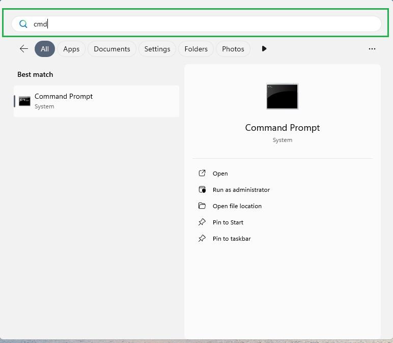 1. ไปที่ช่องค้นหา พิมพ์ “cmd”