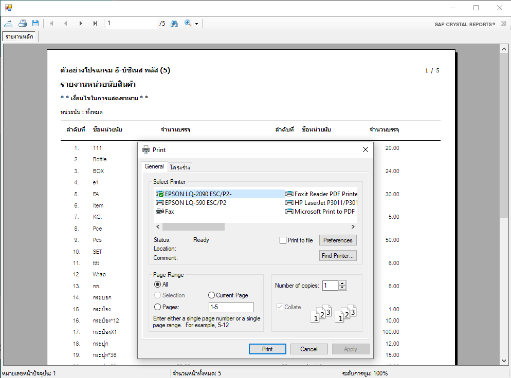 อธิบาย: กดปุ่มพิมพ์เครื่องพิมพ์ แล้วโปรแกรมค้างไม่สามารถกดสั่งพิมพ์ได้